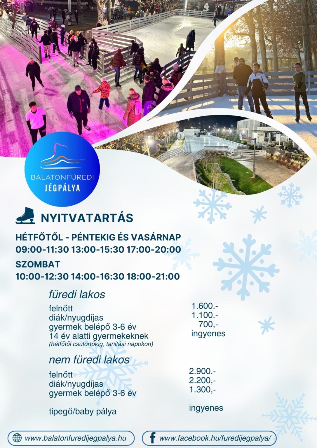 Balatonfüredi Jégpálya A Balaton legnagyobb jégpályarendszere Információk 2025.12.06. 10:00 - 2026.01.31. 21:00családiaktívProgramajánló, Télen - nyáron Balaton!BalatonfüredZákonyi parkMagyarországhttps://balatonfuredijegpalya.hu/ Vissza Továbbiak