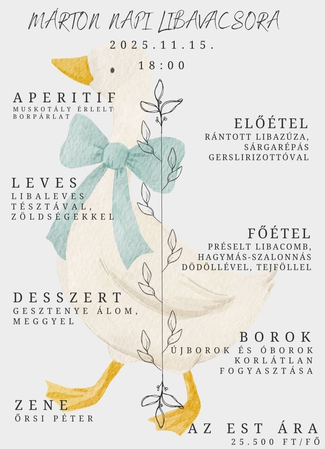 Kóstold meg a hagyományos, ínycsiklandozó libás fogásainkat, kortyolj mellé finom újborokat, és élvezd a hamisíthatatlan Márton-napi hangulatot!